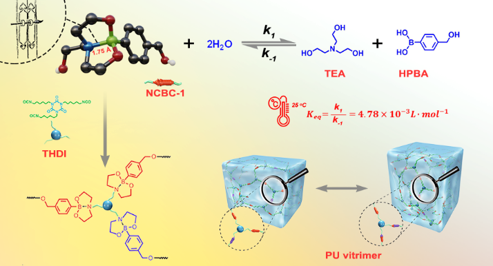 动态共价键是一类能在外界条件(如热、pH 值、光和催化剂等)触发下发生可逆“断裂”与“重组”的共价键。基于动态共价键的“断裂”与“重组”,交联高分子可以通过分子水平上的拓扑结构演变实现高分子材料的再加工和修复。硼酸酯基作为一类典型的动态共价键,被广泛用于开发可修复和可再生的高分子材料。但是,硼酸酯基对水或醇过于敏感的问题一直困扰着人们。