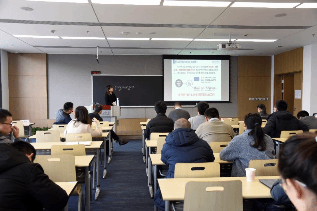 王庆琳副处长分别解读了纵向、横向、校级三种不同项目类型的过程管理和经费管理要点,介绍了目前科研管理信息系统的功能,包括横向纵向到款线上认领(新开发)、线上预借票据、线上招投标、横向合同在线签审、线上预算调整、基本科研业务费线上申请等功能模块。她表示科研院将继续加强过程管理,提高服务效能,为师生提供高质量的服务。
