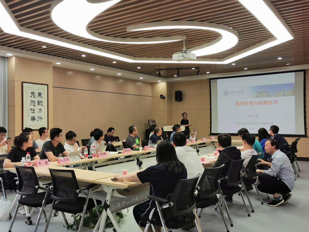 赵立波教授介绍了机械学院精密工程研究所的基本情况,展示了近年来精密工程研究所在传感器及其他检测技术的各项成果。鲁卓阳助理教授介绍了生命学院有关情况。罗国希副教授介绍传感器挑战和需求,并提出相关问题,希望能够利用化学方法制备相关材料、解决科研难题,双方共同探讨、交流了想法。