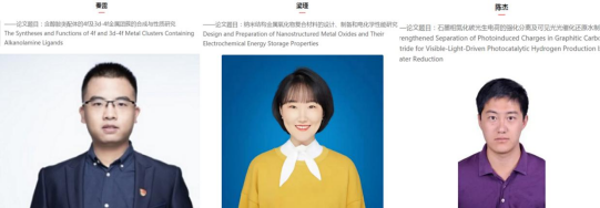 硕博连读毕业生:陈杰博士围绕光电能源转化中的基础科学问题开展研究,解决了高效光电能源转化材料开发与应用中部分关键瓶颈问题;秦雷博士研究方向为功能配位化合物的设计、合成和性质研究,包括稀土和过渡金属团簇的化学合成、磁性研究及簇基质子导电材料的功能研究等;梁瑾博士的研究方向为纳米结构金属氧化物复合材料的设计、制备和电化学性能研究,针对电极材料离子传输的基本科学问题,分别从结构、组成和界面角度对离子传输进行调控,开展系统性的研究工作。