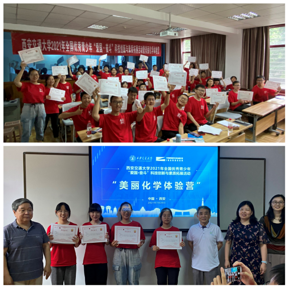 2021年全国优秀青少年“爱国·奋斗”科技创新与素质拓展活动暨美丽化学体验营顺利闭幕。来自全国各地的35名优秀高中生参加了此次实践体验活动,活动包括新营员破冰团建、感悟百年交大文化、聆听教授专题报告、探索神奇化学世界、体验化学实验实训等内容。