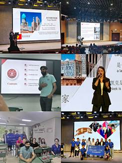 陈姝璇、刘宏浪担任指导老师,以留学生为主要宣讲人向各个国家学生、高校、企业技术人员和在华的留学生及中国学生进行宣讲活动,包括中英文问卷调查、寻找留学生宣讲人、国内外媒体宣传推介、“线上+线下”宣讲实施,活动得到了校团委、香香漫画