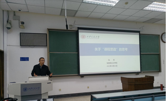 交流会上,马忠教授带来关于“课程思政”的思考精彩报告,系统阐释了课程思政的正确内涵与基本原理,向在场教师传授了“教书”与“育人”有效结合、专业课程与思政元素有机融合的教学方法,为全体与会教师指明课程思政的建设方向。唐玉海、李银环两位老师分别立足于专业、课程、课堂,结合教学资源建设和课堂教学实践进行了经验分享。