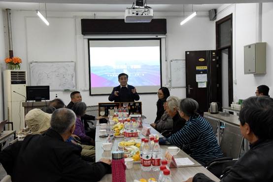 化学楼207会议室气氛温馨,暖意融融,以“以尊老敬老,感恩奉献”为主题,退休教职工重阳佳节茶话会在此举行。
