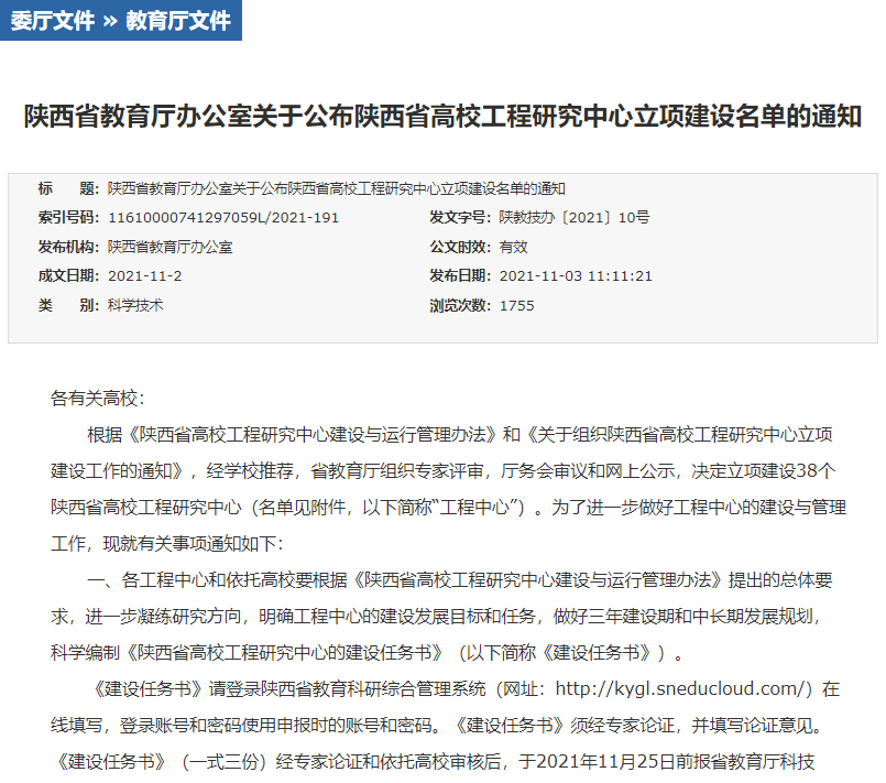 11月2日,陕西省教育厅发文公布首批陕西省高校工程研究中心立项建设名单。由香香漫画