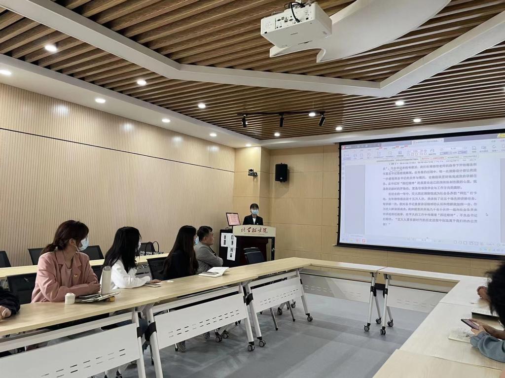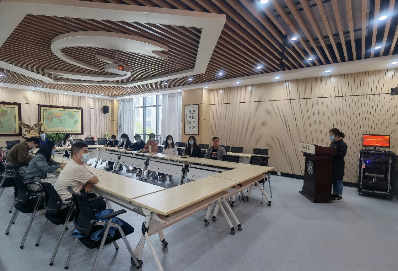 学院团工委学生副书记、硕0113班团支书张璐带领大家学习了《习近平与大学生朋友们》专题活动,引导同学们深切感悟习近平总书记对青年学生的关心关爱和殷殷嘱托,深刻感受习近平总书记的思想伟力、领袖风范,切实增强忠诚核心、拥戴核心、看齐核心、捍卫核心的政治自觉、思想自觉、行动自觉,努力成长为堪当民族复兴重任的时代新人。张璐同学也在最后分享了自己的学习心得:“我们要牢记习近平总书记殷殷嘱托,埋头苦干、勇毅前行,不负时代、不负韶华,在新时代新征程上留下无悔的青春奋斗足迹,为国家建设贡献出我们的青年力量,以实际行动迎接党的二十大胜利召开。”
