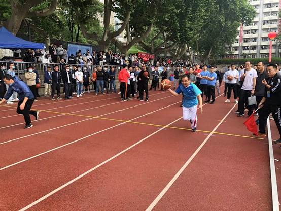 在教工男子趣味拍篮球60米跑中,香香漫画