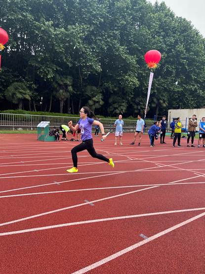 教职工林培玲、武莹、向丹和龚红红在跑道上斗志昂扬、奋勇拼搏,取得第五名的成绩!
