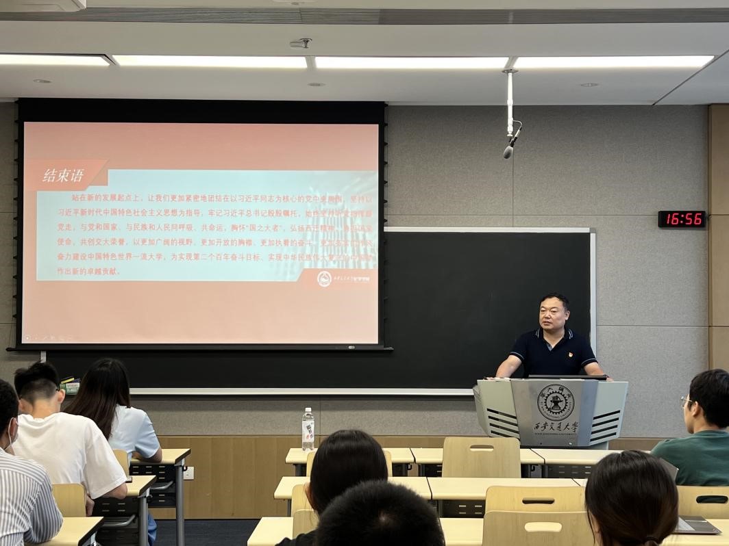 严红昌首先带领支部成员回忆了第十二次党代会以来的学校主要工作以及取得的成就,接着通过介绍“三个必须”和未来发展目标,从多个方面、不同角度对第十三次代表大会进行了剖析,让同学们深刻了解到过去五年来交大取得的成就,也清晰认识到交大未来的发展目标和方向。最后,严红昌强调要坚持和加强党对学校工作的全面领导,推动学校内涵式高质量发展,并语重心长地嘱咐同学们要珍惜当下学校创造的条件和资源,结合自身优势制定未来目标。