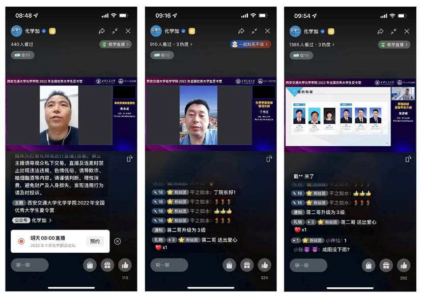 2022年全国优秀大学生夏令营在“云”端举行。本届夏令营活动吸引了全国百余所高校的500余名优秀学子报名,最终有150名学生入营参会。夏令营活动于7月22日上午八点半正式开营,通过腾讯会议、B站和化学加多个宣传平台进行了直播宣传,香香漫画