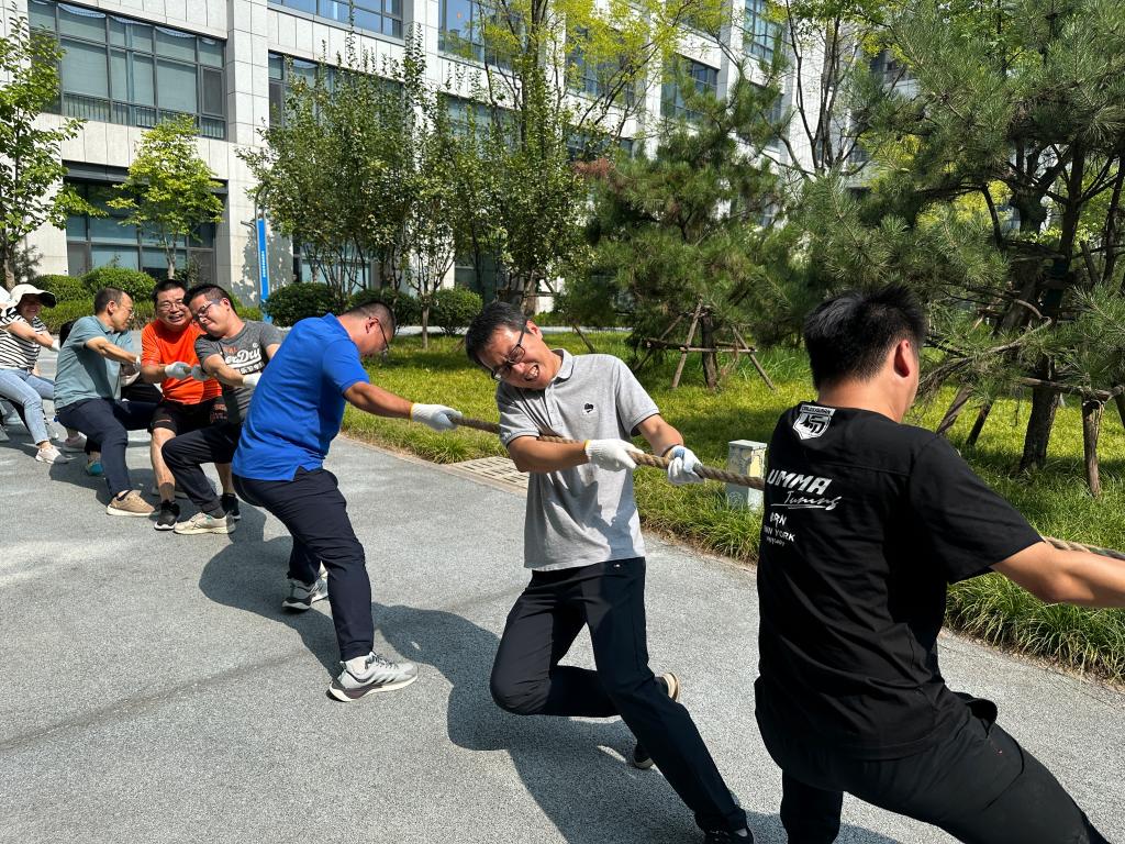 在创新港19号楼举办拔河比赛庆祝第39个教师节暨第7个西迁纪念日。