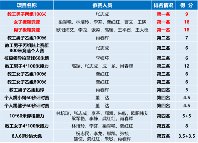 的教职员工们表现出了极高的参与热情和出色的竞技实力。他们投身于包括田径和趣味项目在内的三十多个单项竞赛之中,总参与人数超过80人。