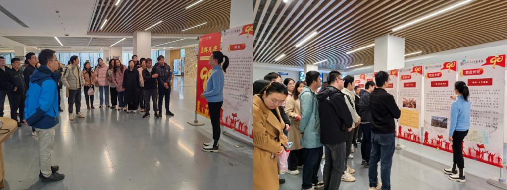 图书馆王可慧老师,为师生们详细解读了每一幅展品背后的故事和历史意义,引导大家重温了这段波澜壮阔的历史。革命先烈们不怕困难、不怕牺牲、艰苦奋斗的精神给在场的每一个人带来深深的心灵震撼,让全体党员深切感受到了革命先烈们坚定的理想信念和顽强的革命意志。