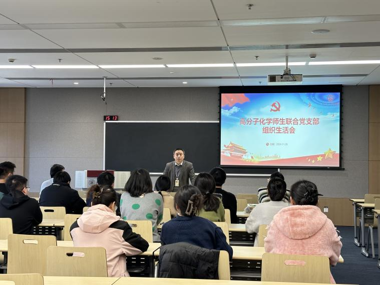 2024年11月29日下午,高分子化学师生联合党支部在19-5111开展了十一月党组织生活会,会议由党支部副书记申锴翔主持,围绕学习重要文件精神与推进支部改组两项重要议程展开。