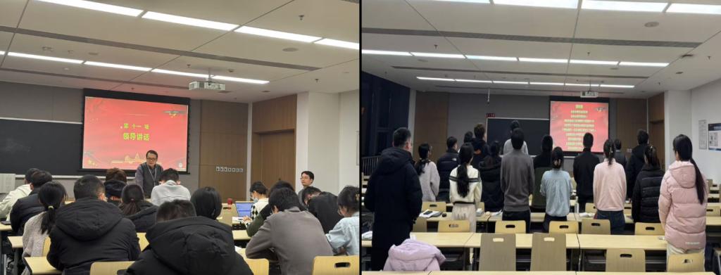 2025年12月14日,绿色创新合成应用师生联合党支部召开了以“勿忘国耻·吾辈自强”为主题的国家公祭日组织生活会。会议在庄严肃穆的国歌声中开始,旨在推进党员发展工作,并通过专题党课激励党员铭记历史,砥砺前行,在科研与学习中发挥先锋模范作用。本次会议由支部书记刘乐老师主持,支部全体党员及积极分子出席。
