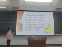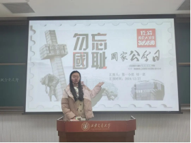来自化学2301的刘一诺同学和来自化学本研2401的吴佳明同学为大家分享了关于国家公祭日的内容,主要围绕历史背景,设立历程,公祭活动,深远影响这四大部分进行讲解,通过PPT讲解与让全体成员观看南京大屠杀相关视频的方式让在场与会人员对南京大屠杀这一历史事件更深刻的感悟,理解了国家公祭日设立的重要性和必要性。
