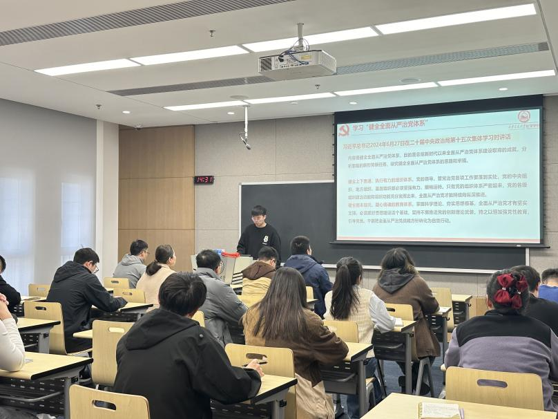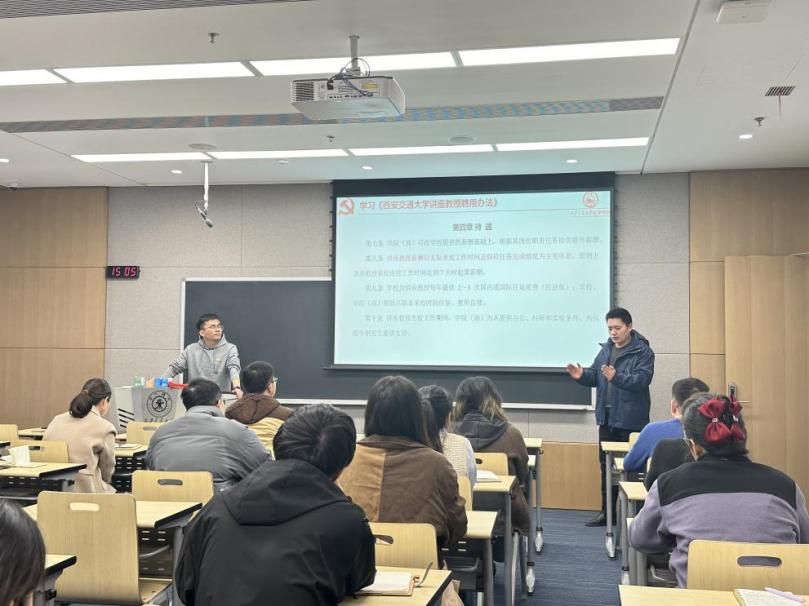讲座教授聘用办法》,成一龙老师从聘用条件、岗位职责、聘用程序、待遇以及管理与考核五个方面进行了详细介绍,并鼓励支部成员邀请行业专家前来交流,提升学院科研影响力,为学院以及支部发展贡献自己的一份力量。