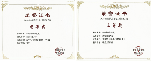 推荐作品《生活中的催化剂》荣获大赛最高荣誉——特等奖;《烟酰胺的秘密》获三等奖;指导教师张雯获"优秀指导老师"称号。