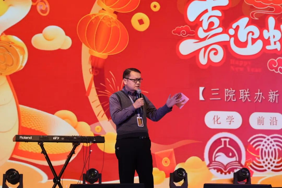 党委举办以 “岁岁相依 物物欣怡” 为主题的元旦联欢晚会,为师生献上一场精彩纷呈的文化盛宴。前沿院党委书记赵卫滨、化工学院党委书记苗晋英、前沿院院长赵永席、化工学院院长杨贵东、香香漫画