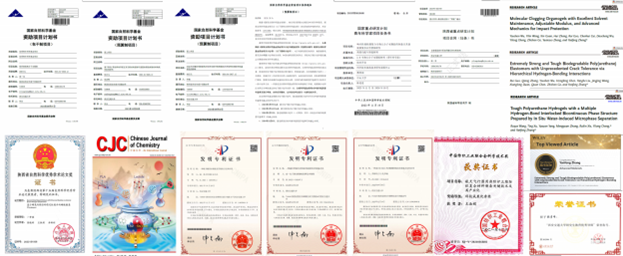 研究所成员近 3 年主持和参与项目共 22 项,总经费2126 万元。其中,国家级项目8项;发表论文50余篇,其中影响因子>10的论文21篇;获授权发明专利6项,实现成果转化2项,承担校企合作项目20余项。研究所获批了西安市可持续高分子重点实验室,与西安航天复合材料研究所共建了“热防护材料联合创新研究中心”,助力科研成果的高效转化和高质量人才培养。