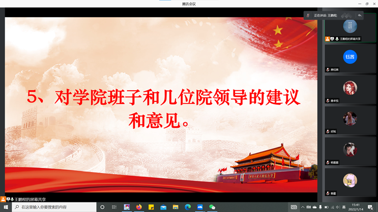 会议第四项,由支部成员分享学习心得。罗美廷说,学院学校设身处地为学生着想、努力为学生解决困难,给同学们带来了极大的安全感;闻学说,面对疫情,我们要约束好自己的行为,也要努力为疫情防控贡献出一份力量。