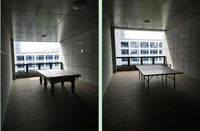 此外在公共区域,设立运动休闲区,放置沙发、跑步机、乒乓球台等休闲运动设施,供教职工在工作间隙锻炼身体,放松身心,营造轻松愉快,团结合作的工作氛围。