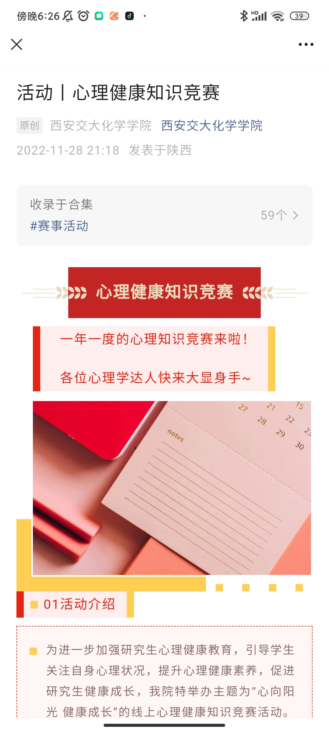 共开展了四方面的活动,包括:开展心理教育主题班会、开展心理健康学生干部主题沙龙、开展研究生心理健康讲座以及线上心理知识竞赛。这些多元化的活动有助于同学们以更好的生理和心理状态投入到后续的学习和科研工作中,有助于形成健康阳光、积极向上的科研学习氛围,有助于提升研究生的整体心理素质和整体素养。