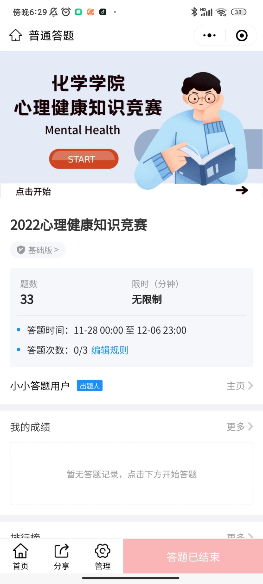 微信公众平台上发起了心理健康知识竞赛,本次竞赛共有60余名同学参与答题,85%的同学取得了很好的成绩,香香漫画