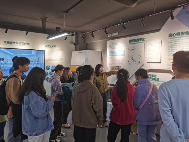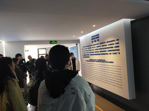 实验室安全体验馆实验室分为安全文化展厅、实验室基础安全体验区等10个区域模块。进入体验馆,讲解员老师向同学们全方位、多角度讲解了实验室中常见安全风险和应对措施,帮助同学们认识到实验室安全问题的复杂性和紧迫性。