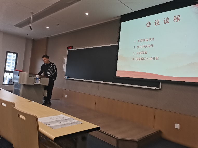 大会第三项,刘乐老师公布本支部新的学习小组,安排了下一阶段学生党员组织的一些工作,并鼓励各位党员同志互相监督,互相帮助,积极学习党的理论知识,提高政治站位,踏踏实实做好本职工作,用实际行动服务高水平科技自立自强。