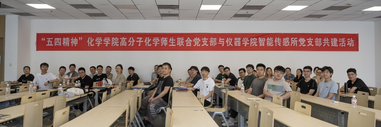 高分子化学师生联合党支部书记成一龙老师、仪器学院智能传感所党支部书记王琛英老师、仪器学院智能传感所党支部副书记王路老师,以及两个支部的教师党员、学生党员、预备党员、发展对象、积极分子参加活动,活动由高分子化学师生联合党支部副书记申锴翔主持。