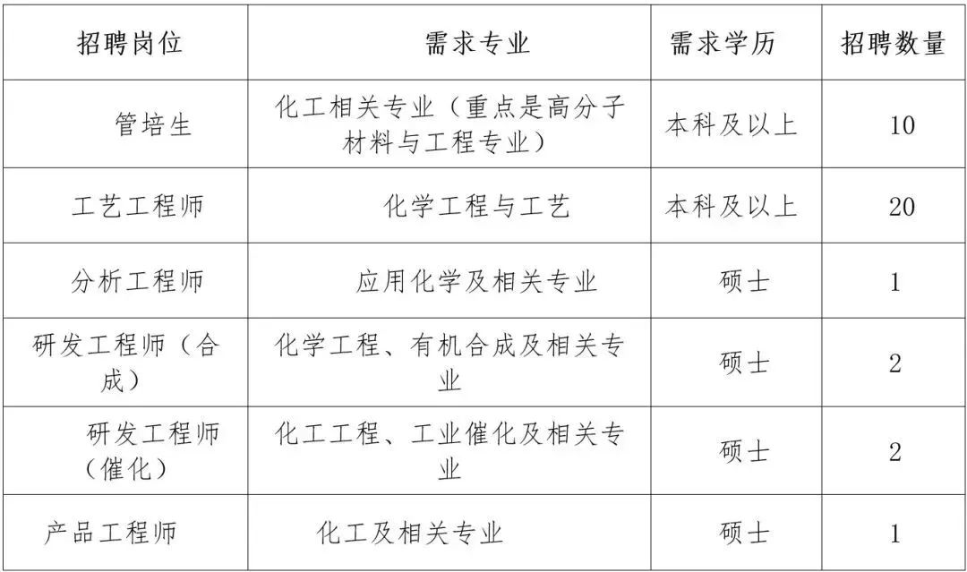 ①化学或化学工程专业,本科及以上学历,硕士优先;